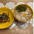 今日は有り合わせで、暖かいおうどんを作りましたぁ。きしめん?にとりのムネ肉に卵になぜかめかぶ〜の取り合わせーwタ・・・